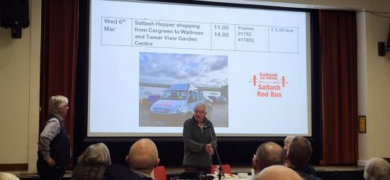 - Mike Finch from Saltash Red Bus explained how this service has grown and now provides all kinds of bus services (including Landulph School bus, 452/454 and now the Wednesday Hopper Shopper bus)
